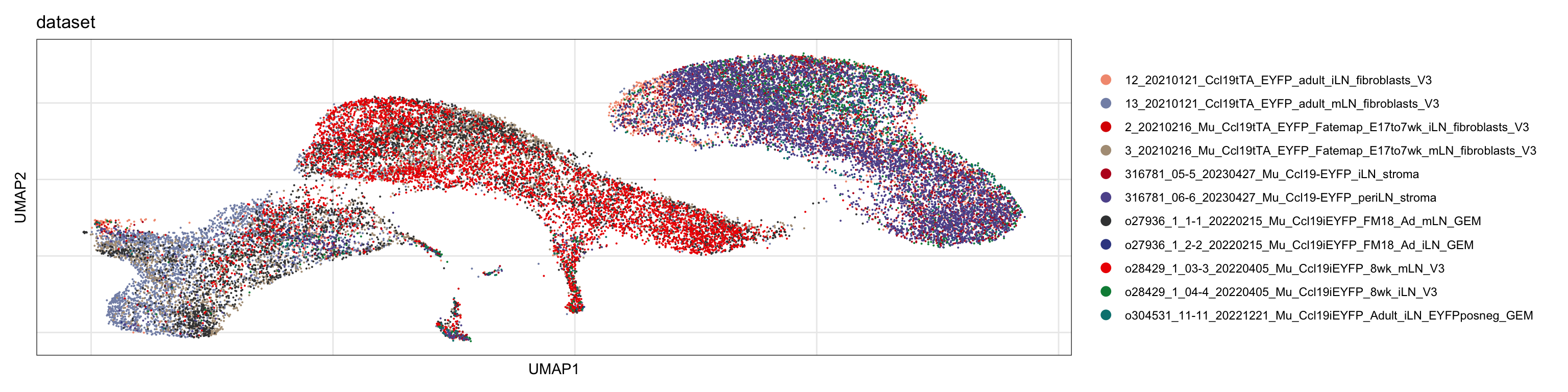 names(colDat) <- unique(seurat$dataset)DimPlot all