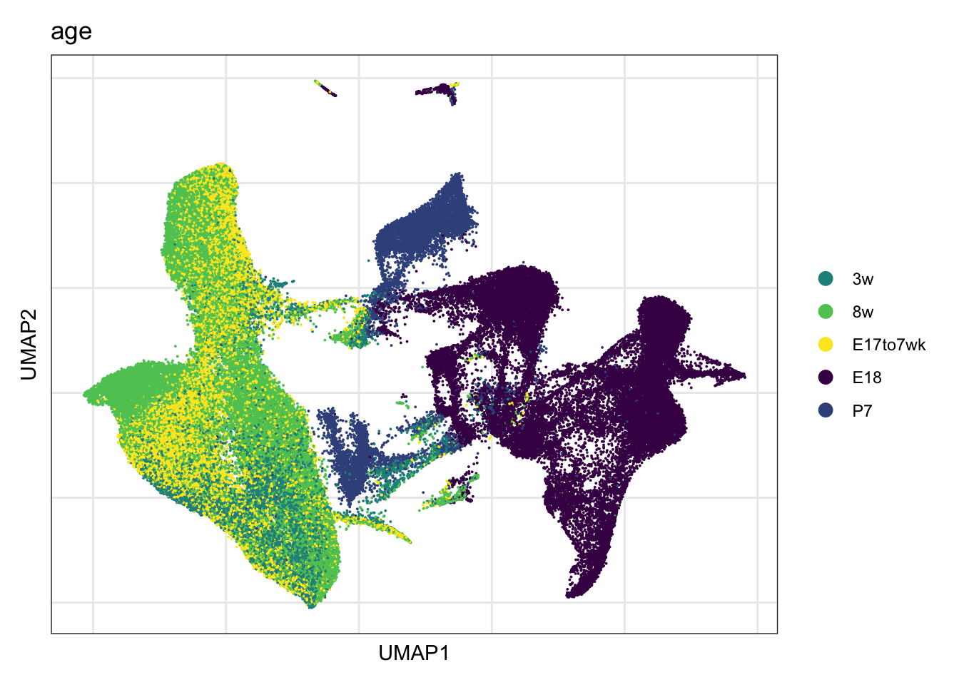names(colAge) <- c("E18" , "P7", "3w", "8w","E17to7wk")
