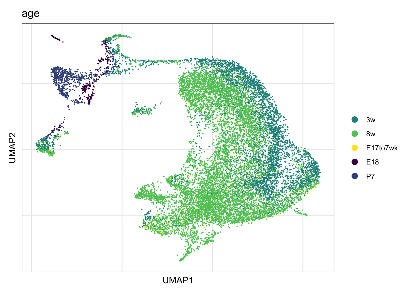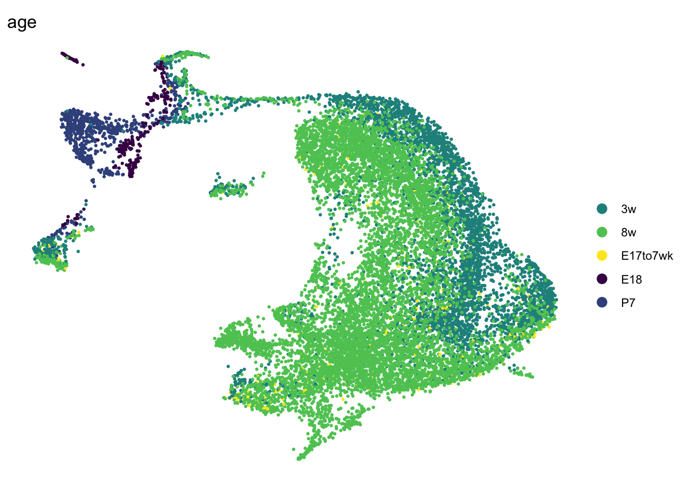 names(colAge) <- c("E18" , "P7", "3w", "8w","E17to7wk")