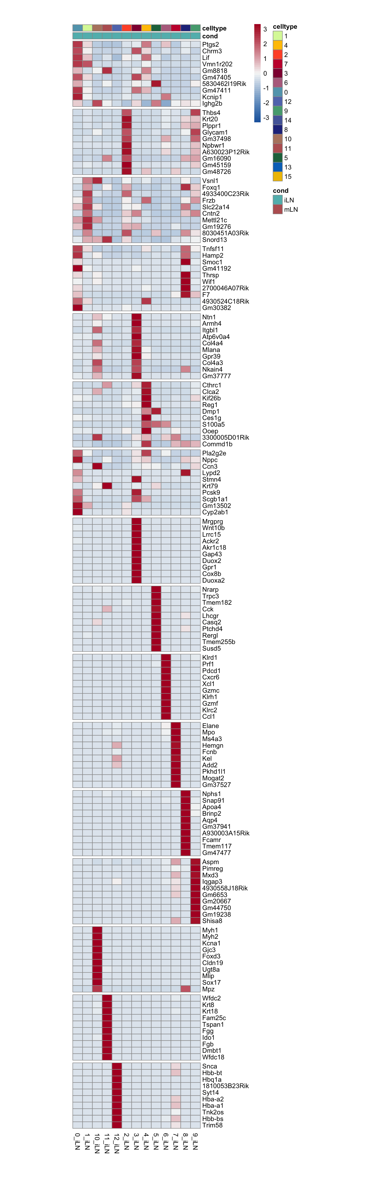 avgHeatmap <- function(seurat, selGenes, colVecIdent, colVecCond=NULL,