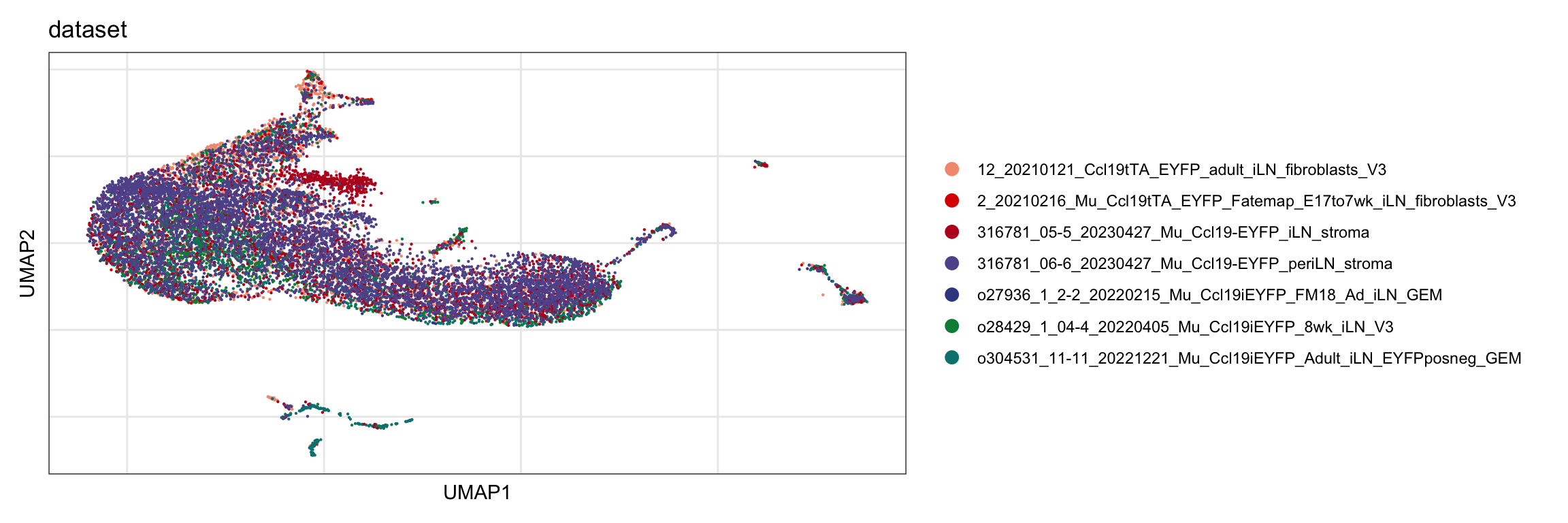 names(colDat) <- unique(seurat$dataset)DimPlot all