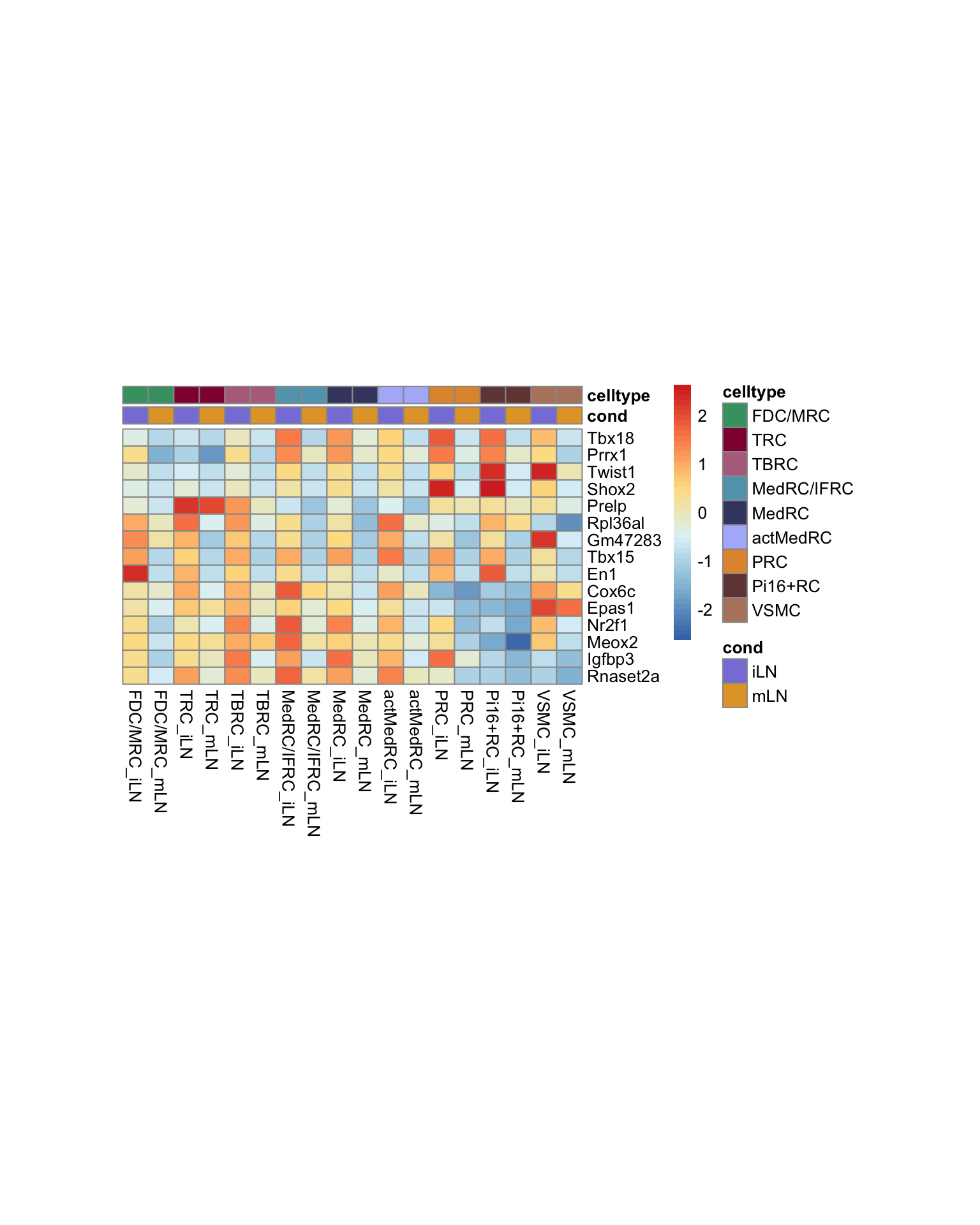 names(colLoc) <- c("iLN", "mLN")