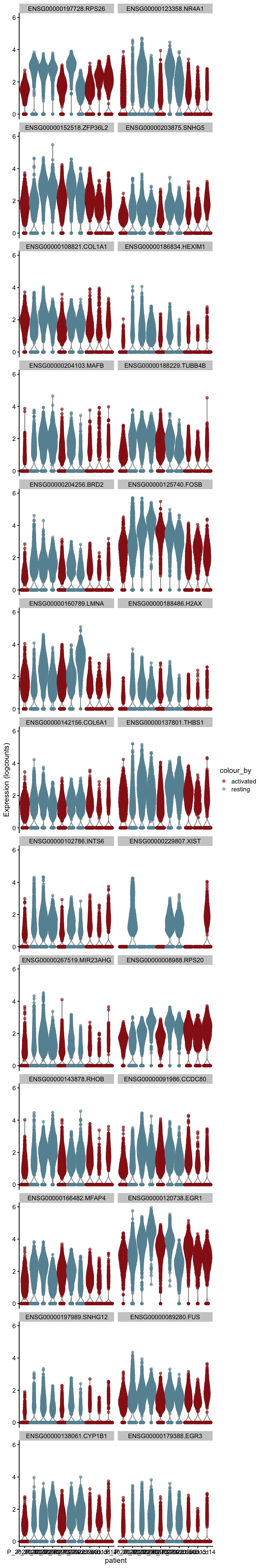 #m.out <- scoreMarkers(sce, sce$cond2, block=sce$patient)