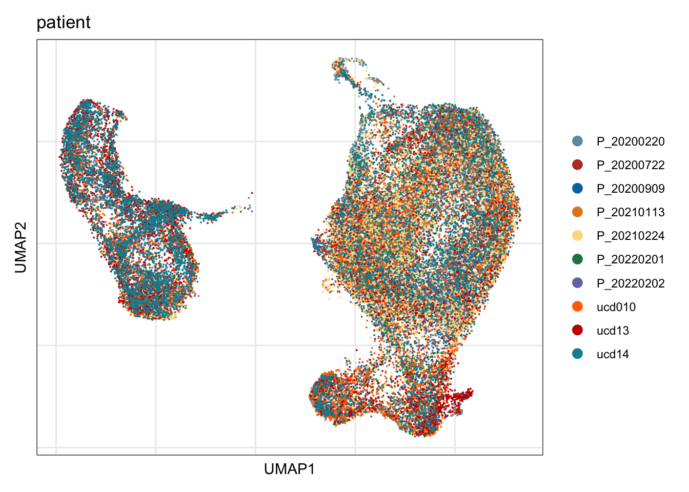 DimPlot(seurat, reduction = "umap", cols=colPat, group.by = "patient")+