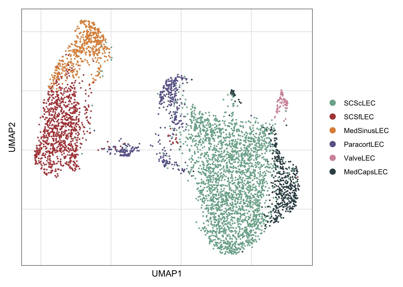 seurat$label[which(seurat$intCluster %in% c("2"))] <- "MedSinusLEC"